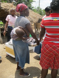 We spent our second morning in Somanya visiting around. First, the Kitchen and Canteen Ladies. From the Canteen Ladies we bought breakfast, wachee.