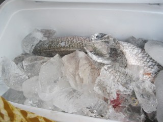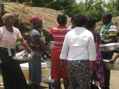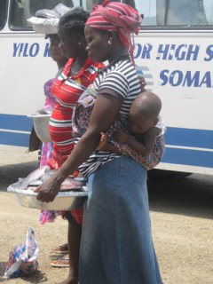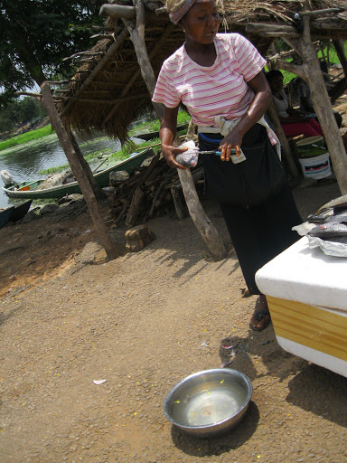 Jay bartered with the women while Matt and I found sachets of water. She bought 6 big tilapia for 40 cedis.