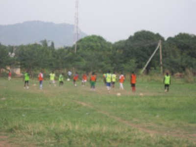 After dinner, it wasn’t quite dark yet, so we walked the one kilometer into town. We took a shortcut through a field hosting a few soccer games. The teams stopped to let us pass through. “Good evening, how are you?” “Good evening, we are fine.”