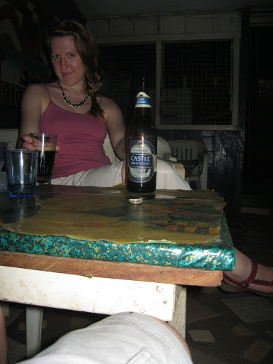 Be Serious is a dark little corner with maybe three tables and mini-fridge-sized speakers blasting out auto-tuned Hiplife. The only lights I could find in the place were in the cage and rotating from the ceiling- a single, multi-colored bulb. We were the only patrons in the bar. Desmond joined us for a beer. Afterwards, Matt told me that for a long time he thought Desmond was part owner of Be Serious, but now he’s pretty sure he’s just a drunk man who hangs out there every night.