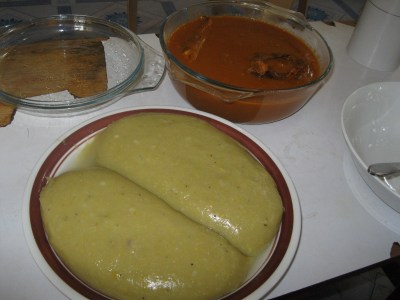The finished product! This is entirely too much for two people. It’s too much for four people. But Gabby and Jay made a habit out of overfeeding us. The fufu was fantastic- even, or maybe especially, with my sickness. When we balked at the size of this plate, Gabby laughed and said, “I want to see Auntie Jennifer’s belly grow big!”