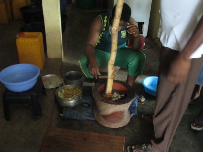 Jay made us fufu that afternoon, and Gabby made sure we saw the whole process. He was going to ask a boy to pound it, but no one was immediately around, so he cheerfully took up the task.