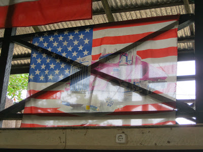 | In the restaurant, an American flag with a semi on it. Yes, this is what the rest of the world thinks of the U.S. |