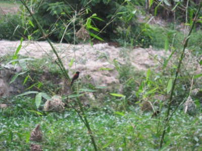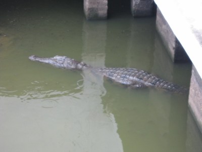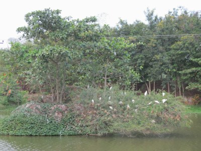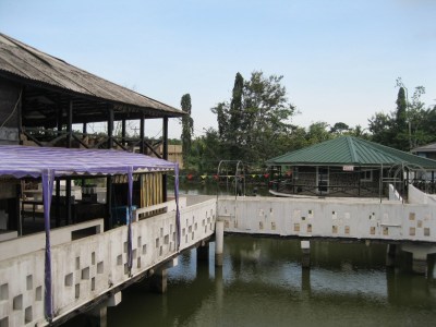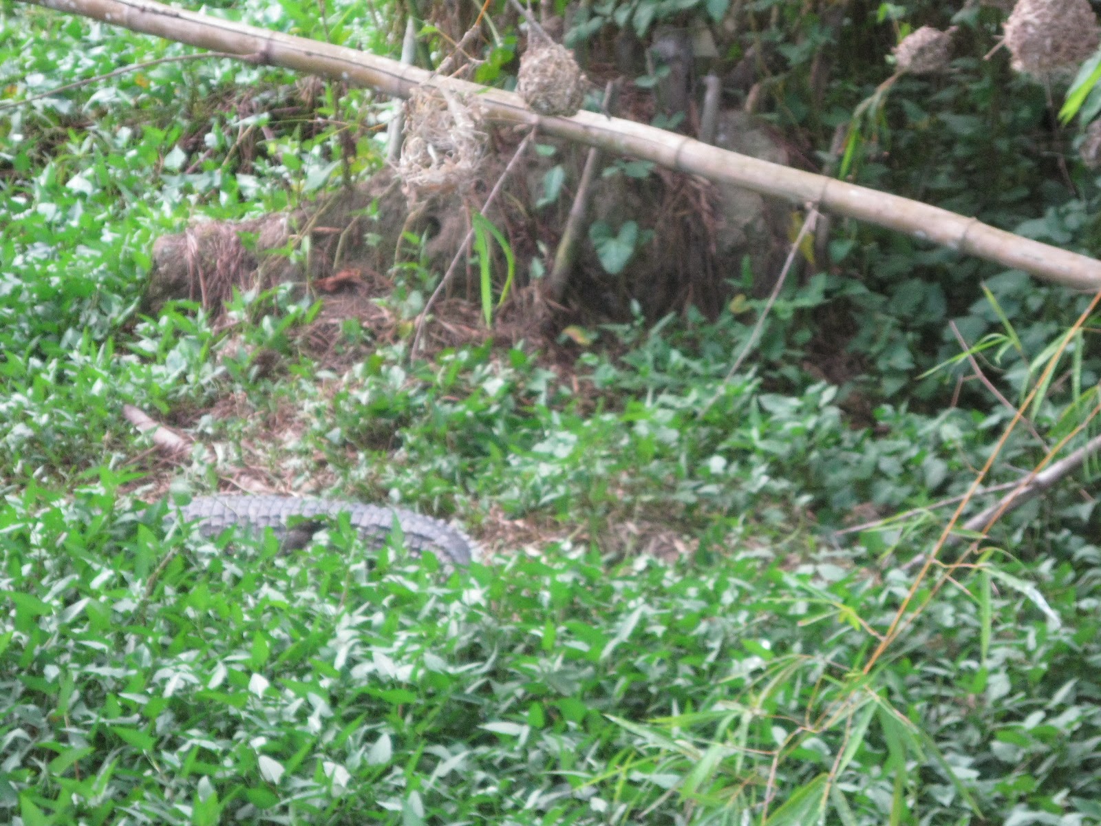 The Botel is quite a bit bigger than the other places we’d been, which have between 10 and 15 rooms. This place has 59! It also has an open-air restaurant that is situated in the middle of…wait for it… a crocodile pond. The pond has an island that provides shelter for lots of mud weavers and these white stork-like birds. A walkway around the perimeter of the pond allows for closer croc views.