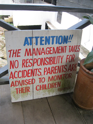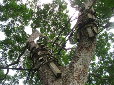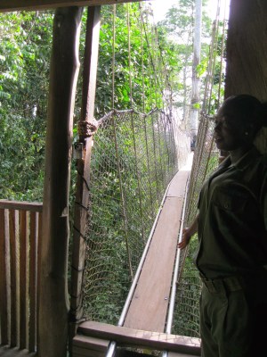 And also frightening! Out of structural necessity, the whole thing sways and creaks and snaps, including the platforms. I could only force myself to look down so often because we were at such dizzying, flexible heights. I kept having to remind myself that we’d been in far greater danger in the tro-tro on the way there, the one whose driver piled in several more people than he was supposed to (the only tro-tro driver I felt was truly reckless) while the mate straddled the window and lap of the nearest passenger. Although since we were going to take a tro-tro back to the Botel, this wasn’t exactly comforting.