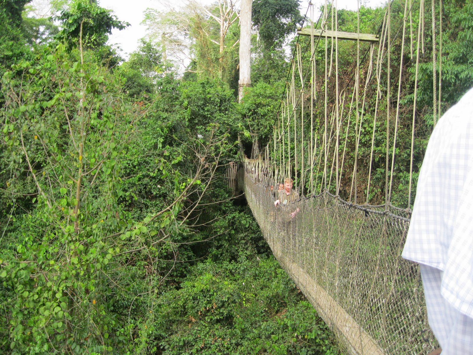 The next morning, we got up early to head to Kakum National Forest to hike in the canopy of the rainforest. The canopy walk is a USAID-funded project, designed by two Canadians and six Ghanaians, who are still there to maintain it.